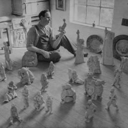 1950年代から60年代にかけて彼の作品は聖書のモチーフが主流で、重厚な作りが特徴となりました。ホルムはしばしば鉄のように見える黒の釉薬を用いました。この時期の彼のフィギュアは、ますます彫刻的で、スタイリッシュで、ほとんど抽象的になっていきます。1960年代から70年代初頭にかけて、ホルムの作品は柔らかい印象のものに変化していきます。彼の芸術スタイルは新たな段階を迎えることとなりました。