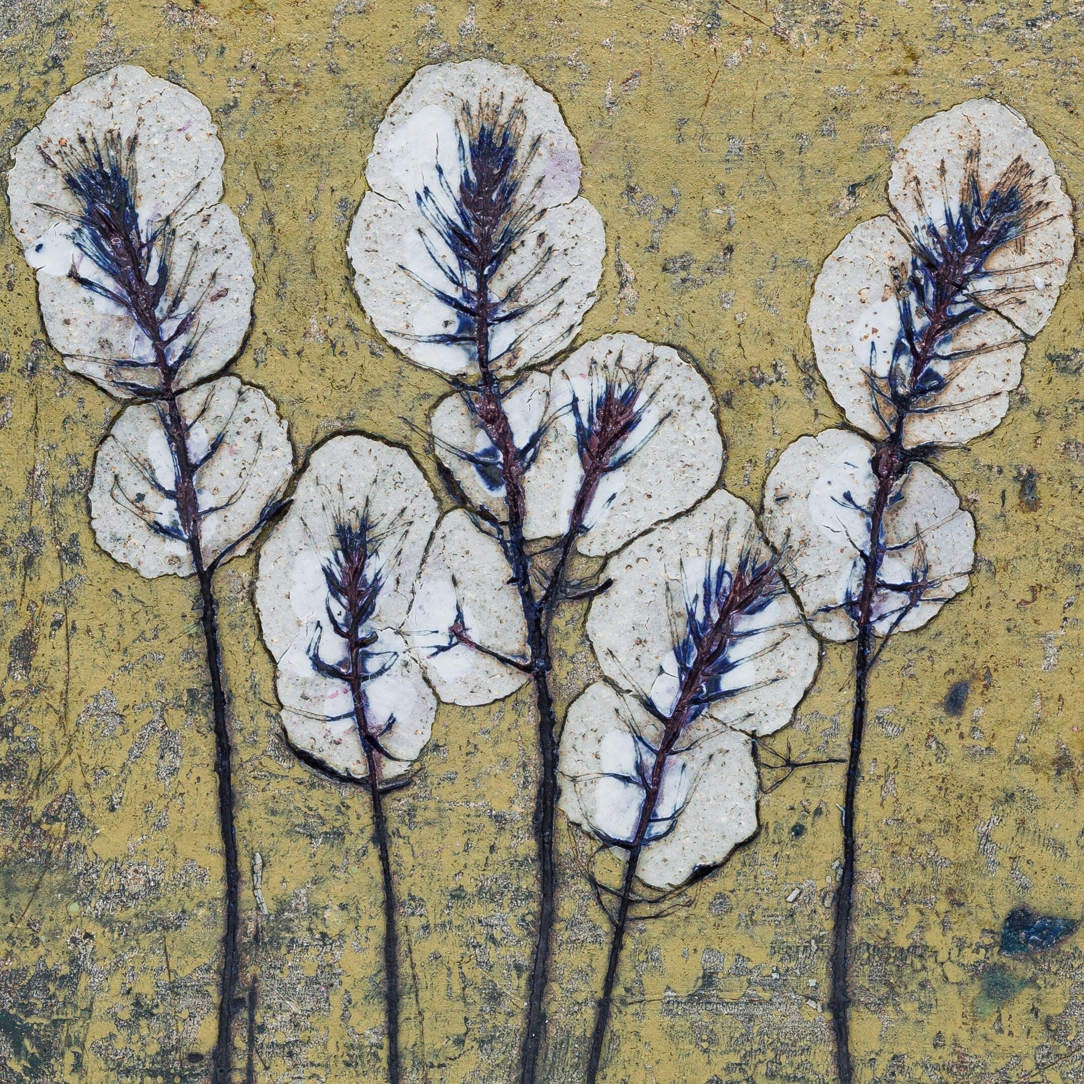 それは、土の力強さや形をいちばん引き立ててくれる色だったのです。派手ではなく、けれど弱くもない。静かに置かれた青が、作品に緊張感と落ち着きを与えていました。