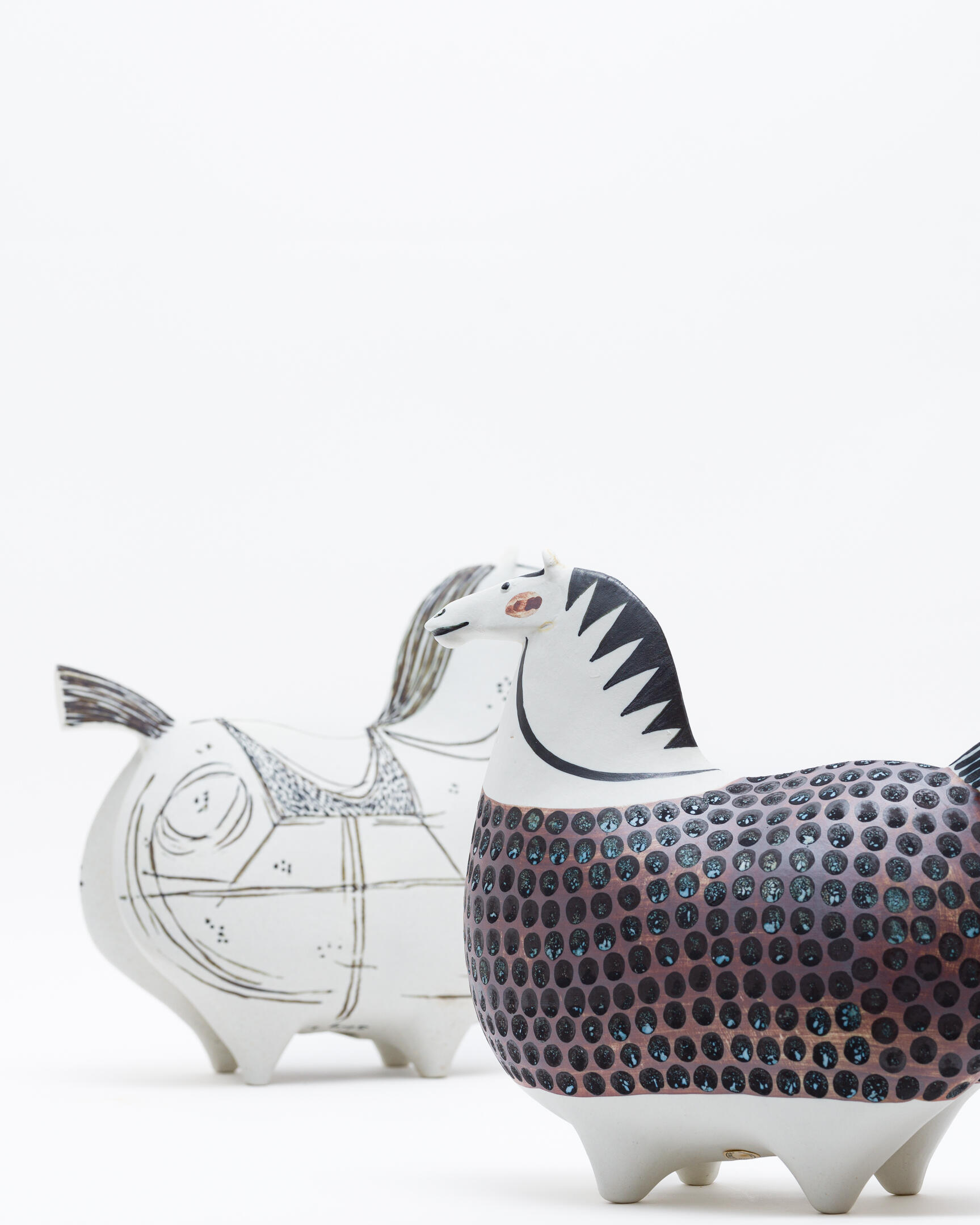 フィンランドのARABIAアート部門で活躍、1937年のパリ万博で金賞を受賞し、国際的な評価を確固たるものとしました。彼の作品は、動物をリアルかつ魅力的に捉えた彫刻で知られ、独自の釉薬の技術による温かみのある表現が特徴です。…