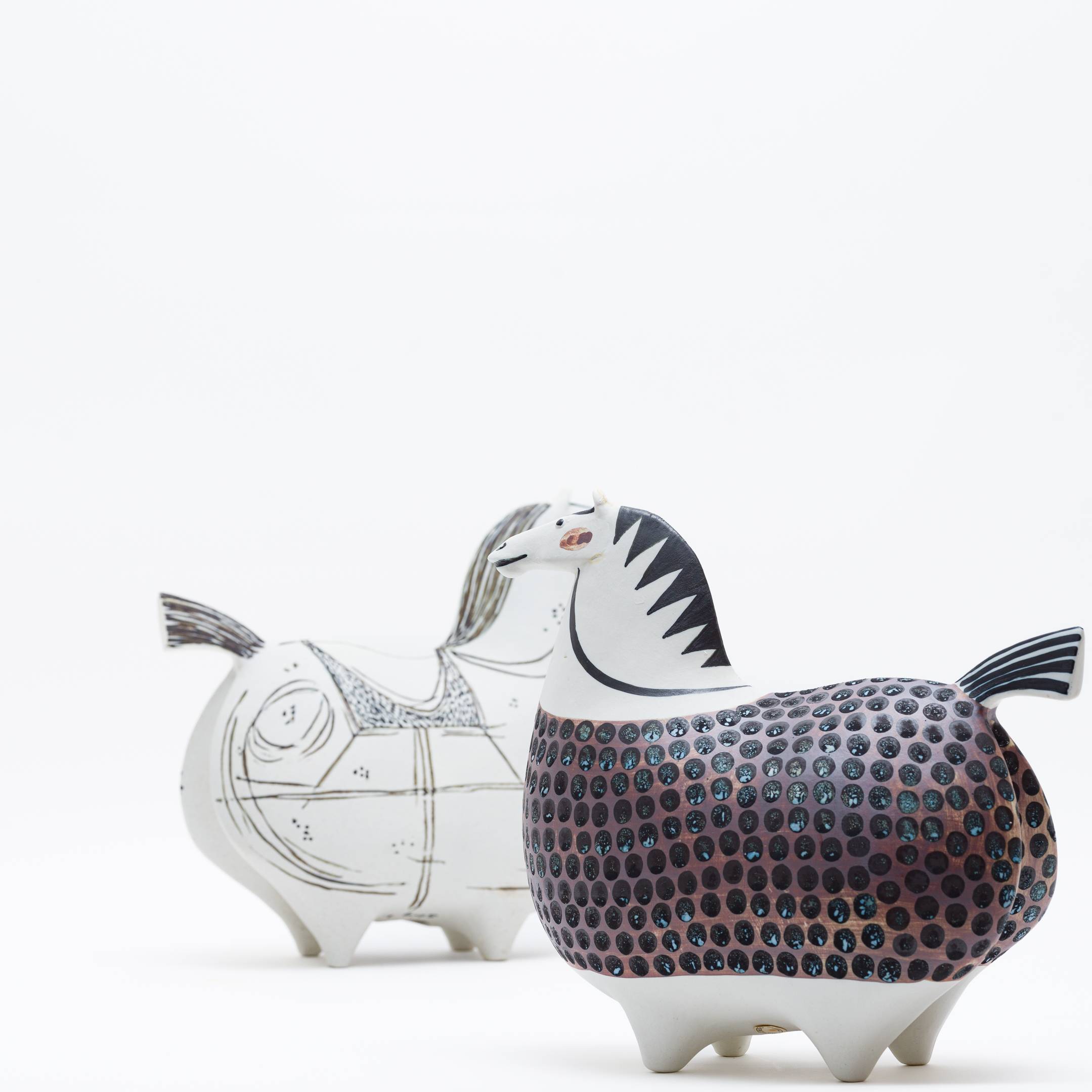 フィンランドのARABIAアート部門で活躍、1937年のパリ万博で金賞を受賞し、国際的な評価を確固たるものとしました。彼の作品は、動物をリアルかつ魅力的に捉えた彫刻で知られ、独自の釉薬の技術による温かみのある表現が特徴です。…