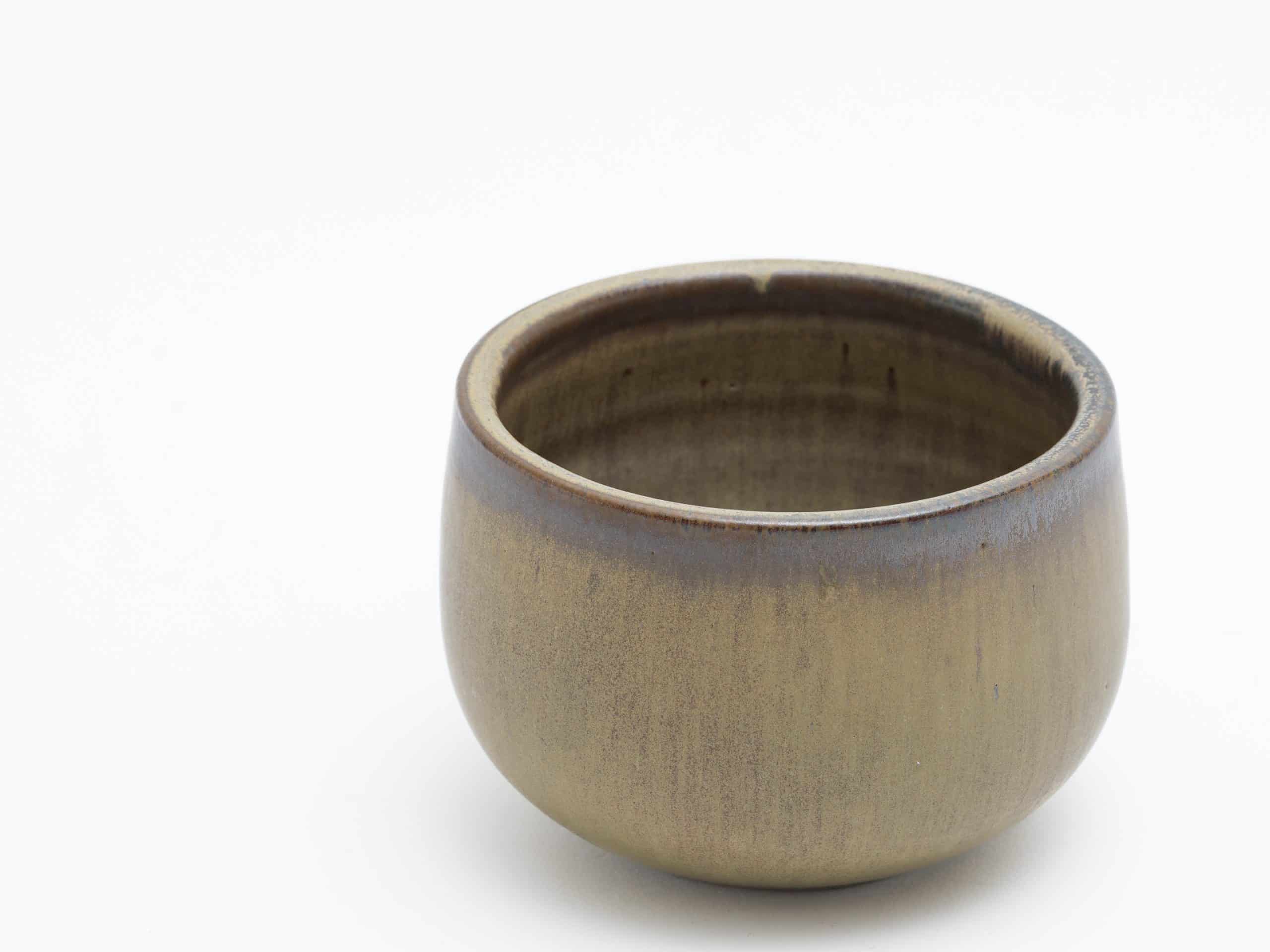この作品の真価は、丸みを帯びた端正なフォルムと、それを包む繊細な釉薬との調和にあります。落ち着いたアースカラーのマット釉は、ホルムがその深い知識をもって探求した多様な釉薬表現の一つです。彼は、彫刻とは異なる滑らかな器には、その美しさを最大限に引き出すための釉薬が必要だと理解していました。
