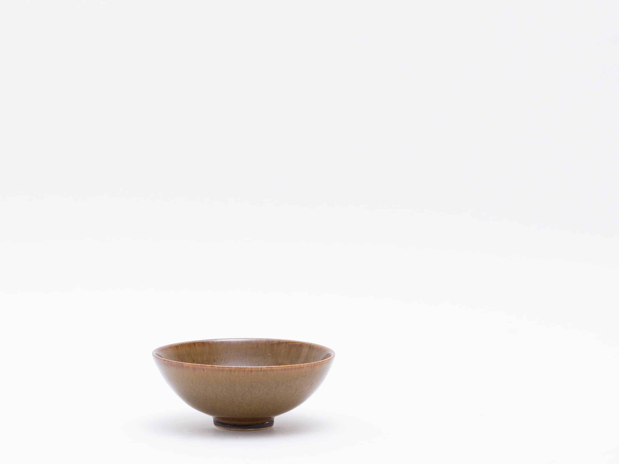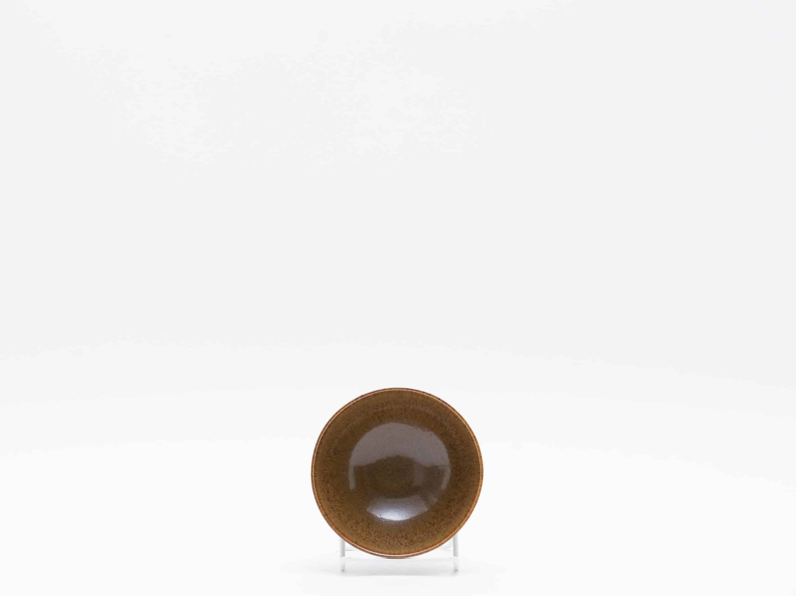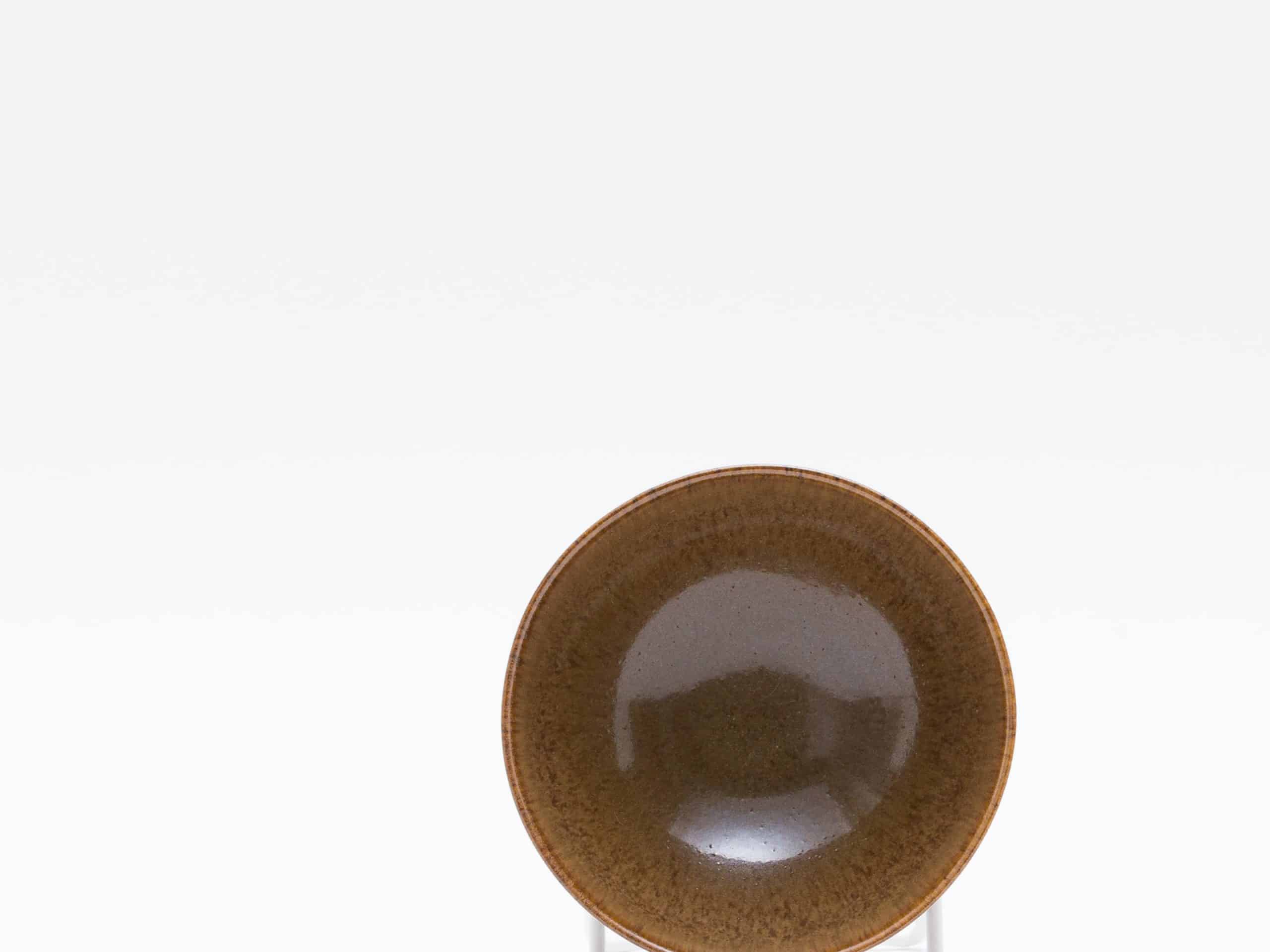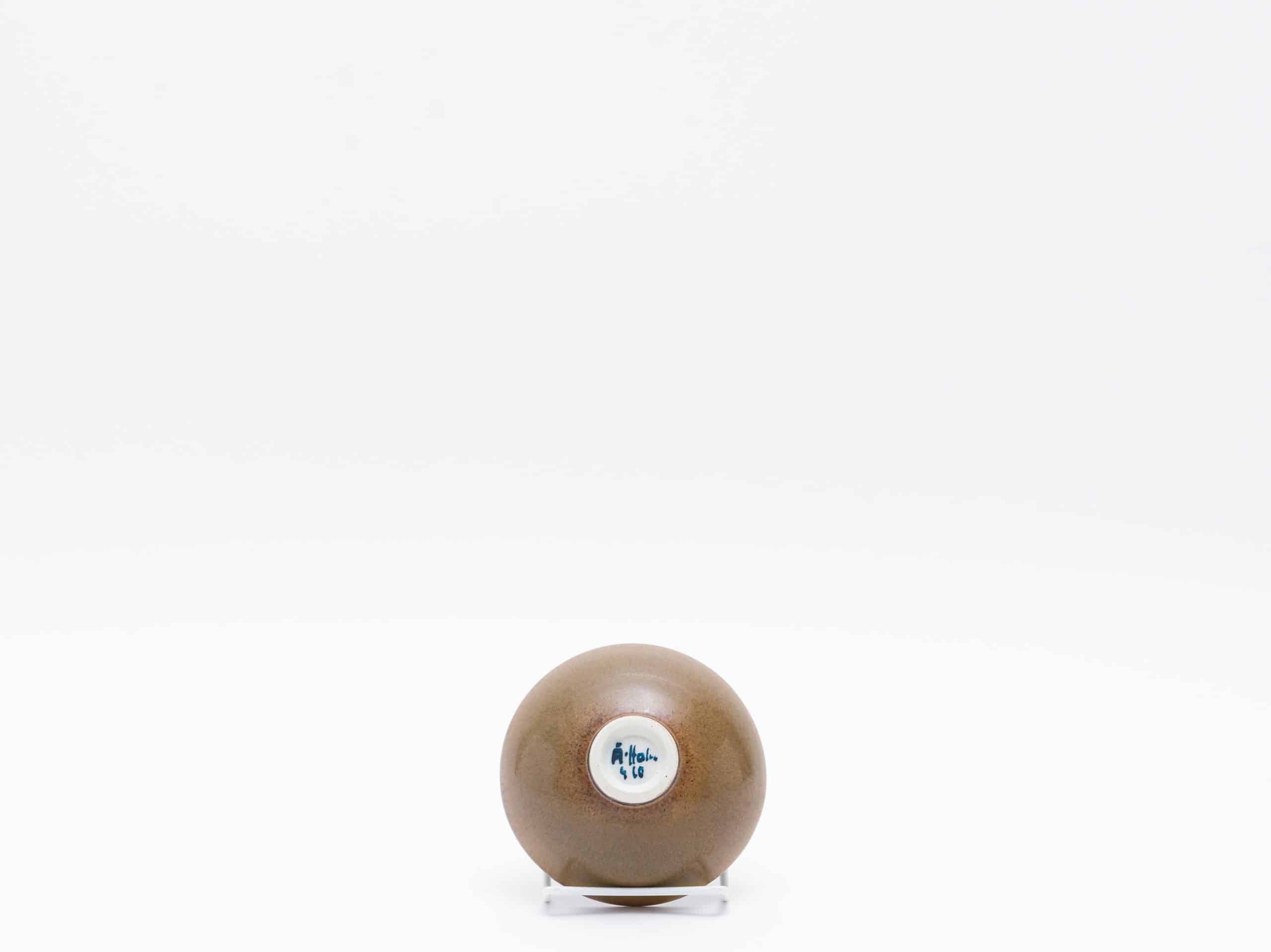 この作品は、彼が研究した東洋陶磁を思わせる、薄く挽き上げられた清らかな造形が特徴です。器全体を覆うのは、落ち着いた茶系のマット釉であり、その均質で穏やかな表情は、キャリア晩年の作風を示唆しています。