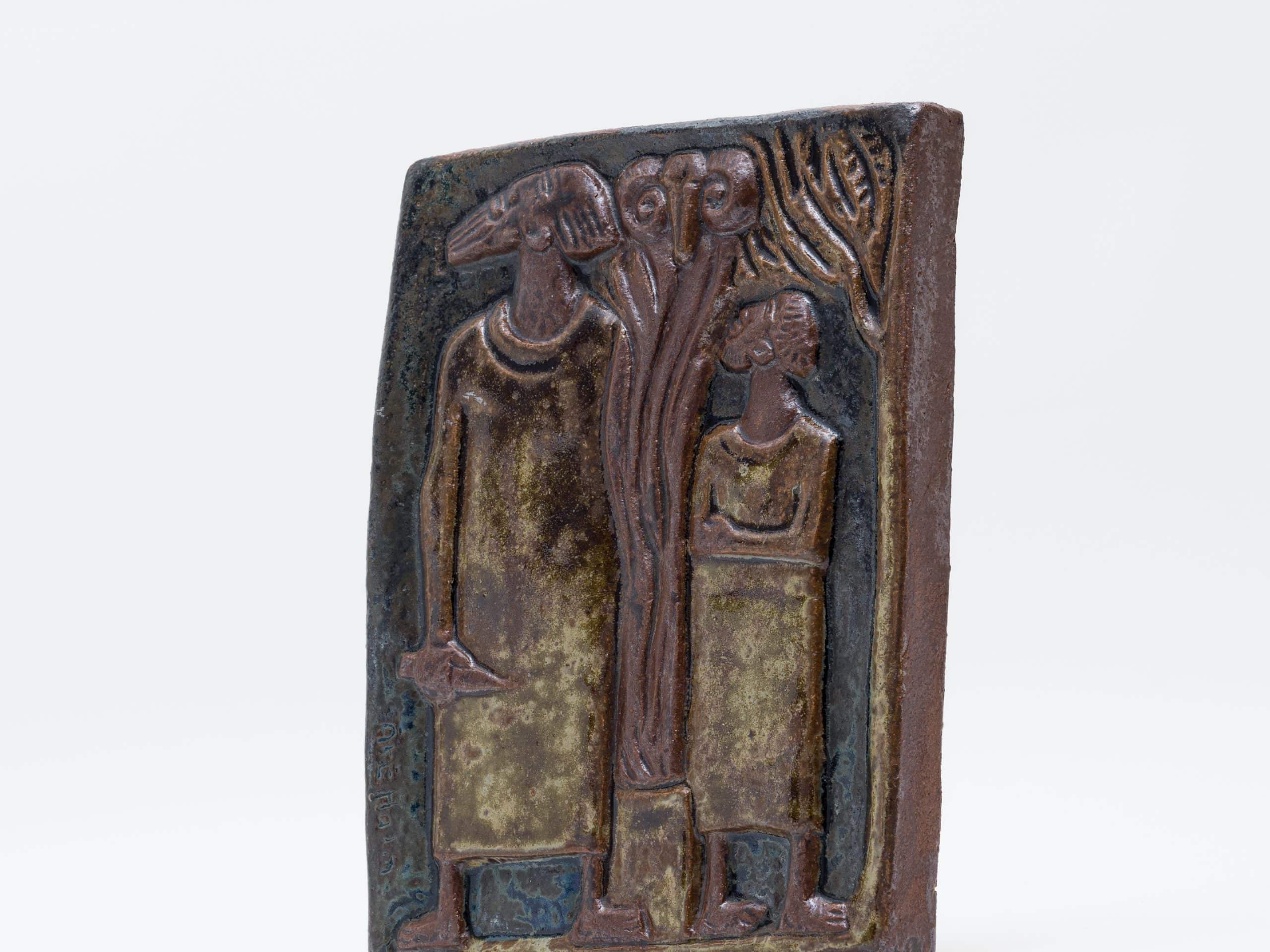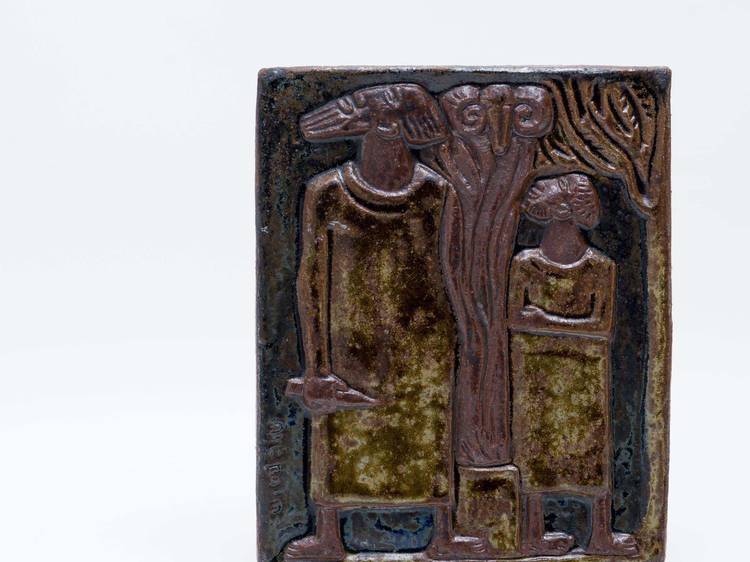 Åke Holm(オーケ・ホルム)が、その創作活動の根幹をなす旧約聖書の物語を主題として制作した、重厚な壁掛けの陶製レリーフです。ホルムにとって聖書の物語は、人間の信仰、試練、そして救済といった普遍的なテーマを探求するための尽きることのないインスピレーションの源泉でした。