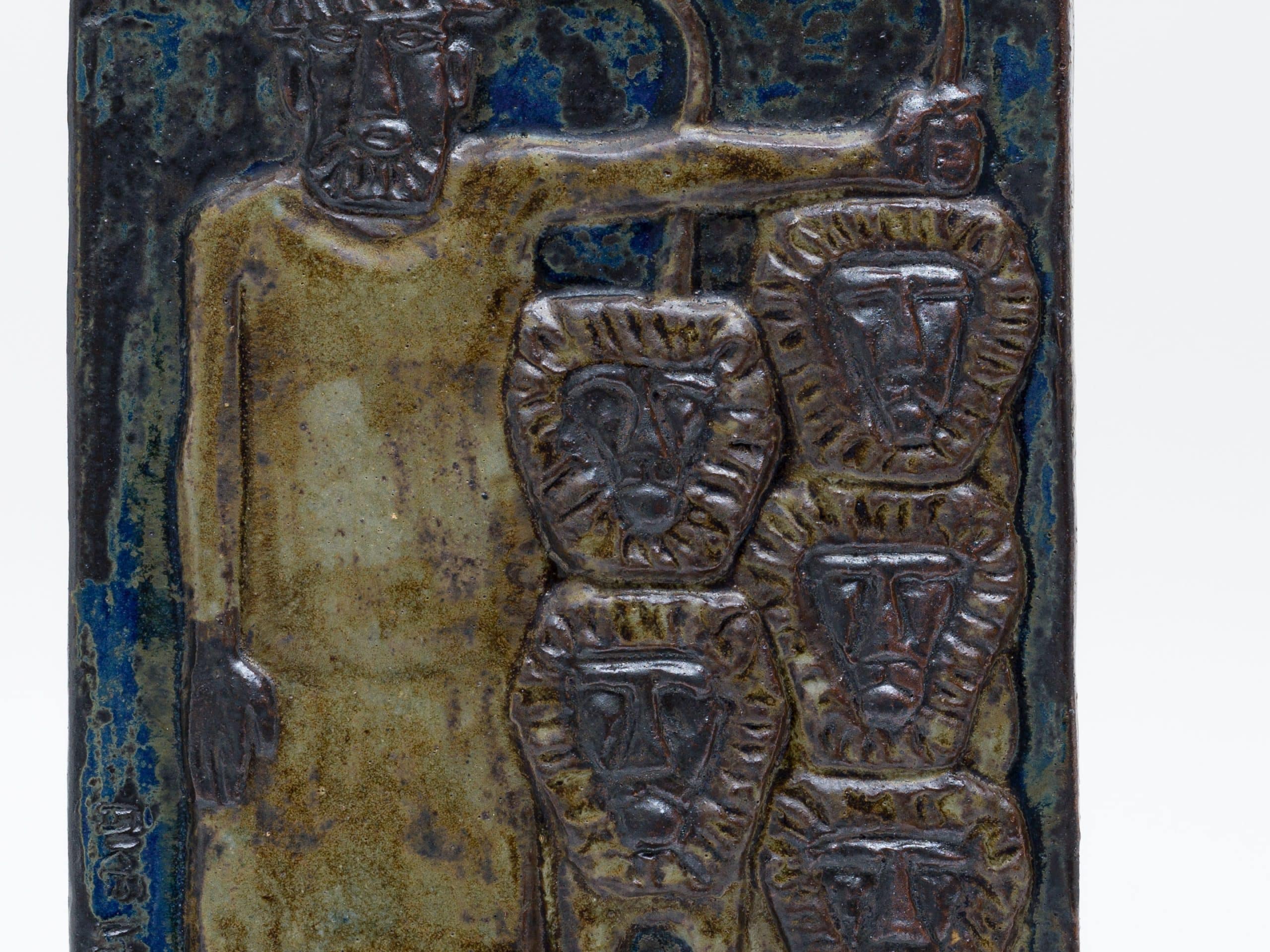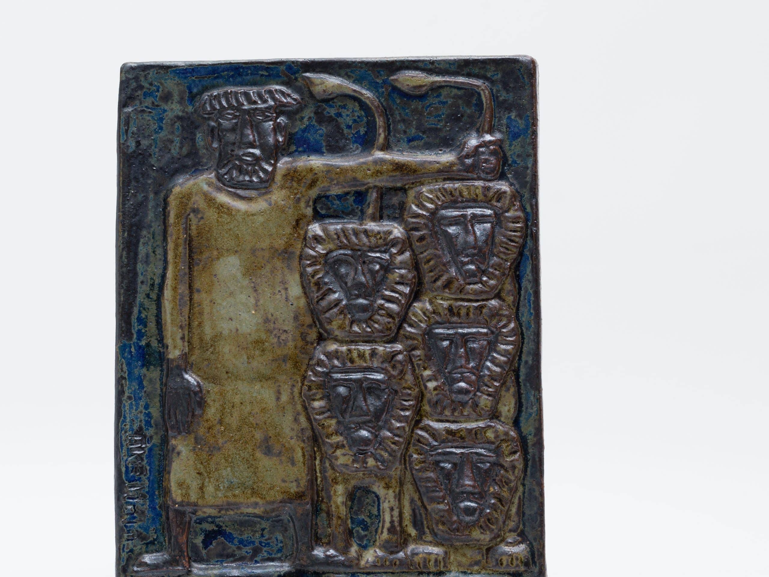 Åke Holm(オーケ・ホルム)が、その創作活動で繰り返し取り上げた旧約聖書を主題とする、力強い壁掛けの陶製レリーフです 。ホルムの作品群において、聖書の物語は単なる宗教的な場面描写に留まらず、人間の信仰や試練といった普遍的なテーマを探求するための重要な媒体でした 。