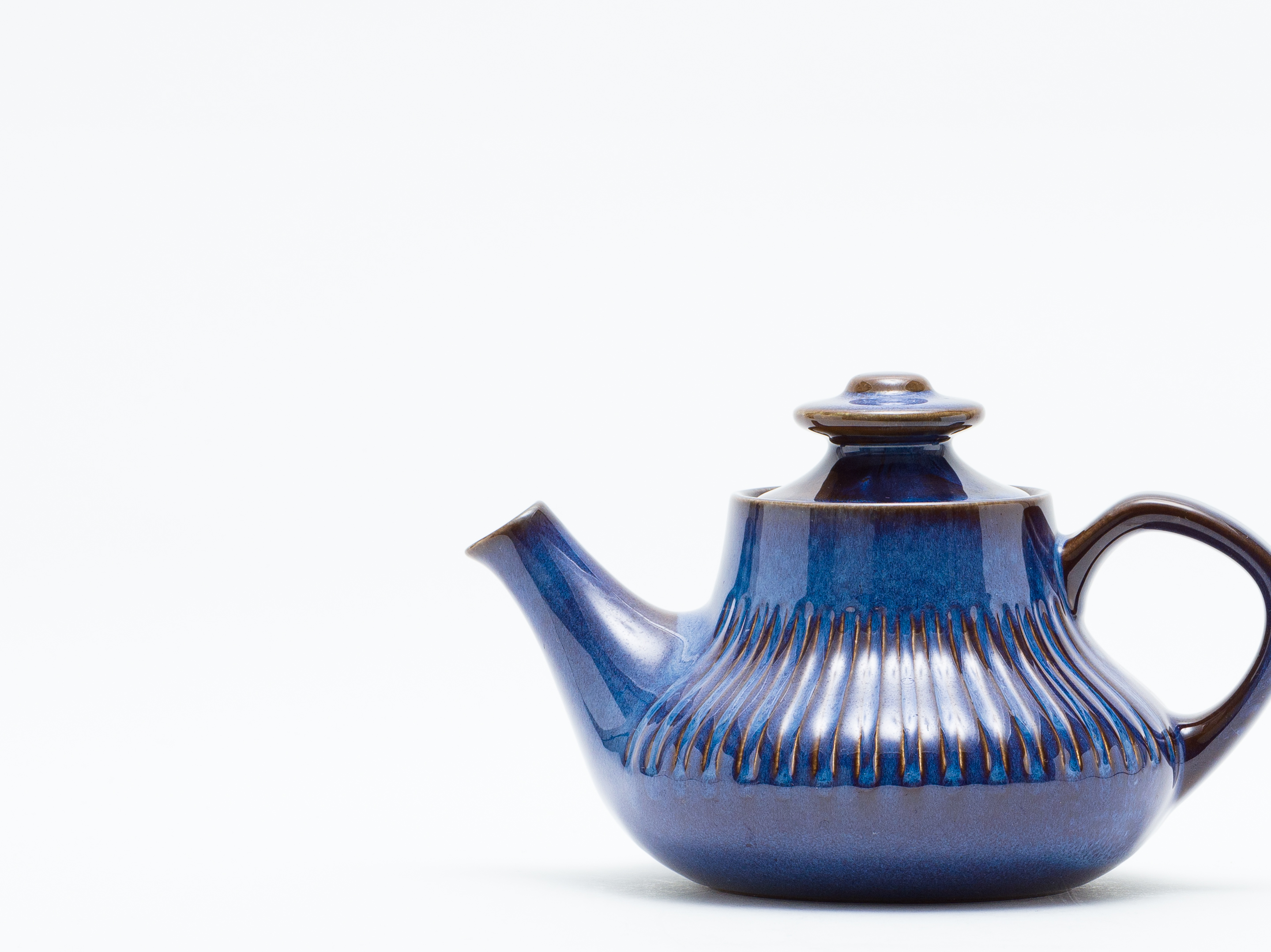 Gefle(ゲフレ)のKosmos(コスモス)シリーズのポットです。艶のある深いブルーとブラウンの組み合わせが他にはない作りになっています。日本の食器とも相性の良いカラーで毎日食卓に登場しそうですね。