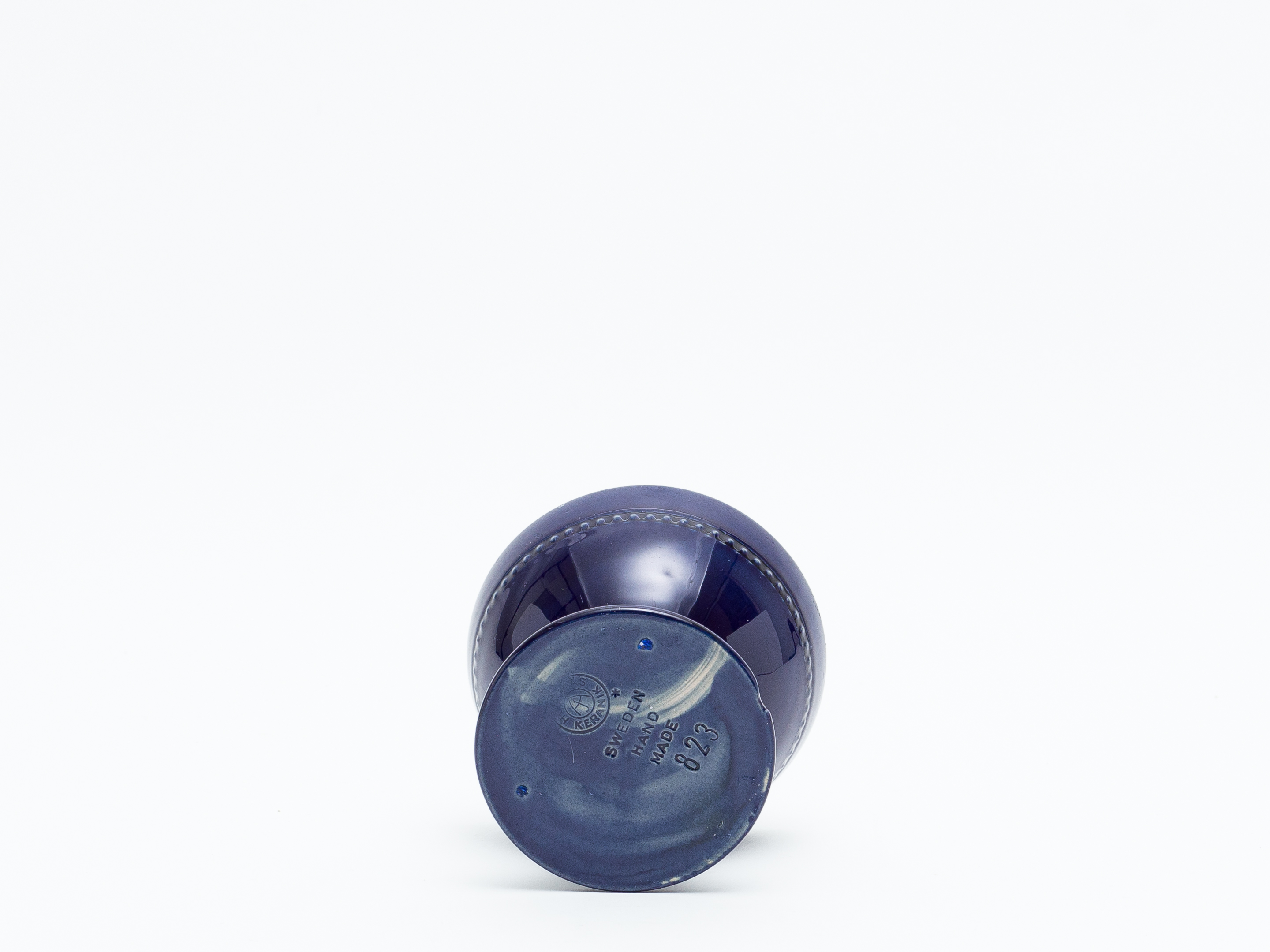 このシリーズの特徴は、その名の通り「Pärlband(真珠の連なり)」と呼ばれる、 器の胴体をぐるりと巡る小さなドット状の装飾です。この規則正しくも柔らかな粒の連なりが、素朴なフォルムに繊細なリズムと軽快なエレガンスを与え、器全体を品良く引き締めています。