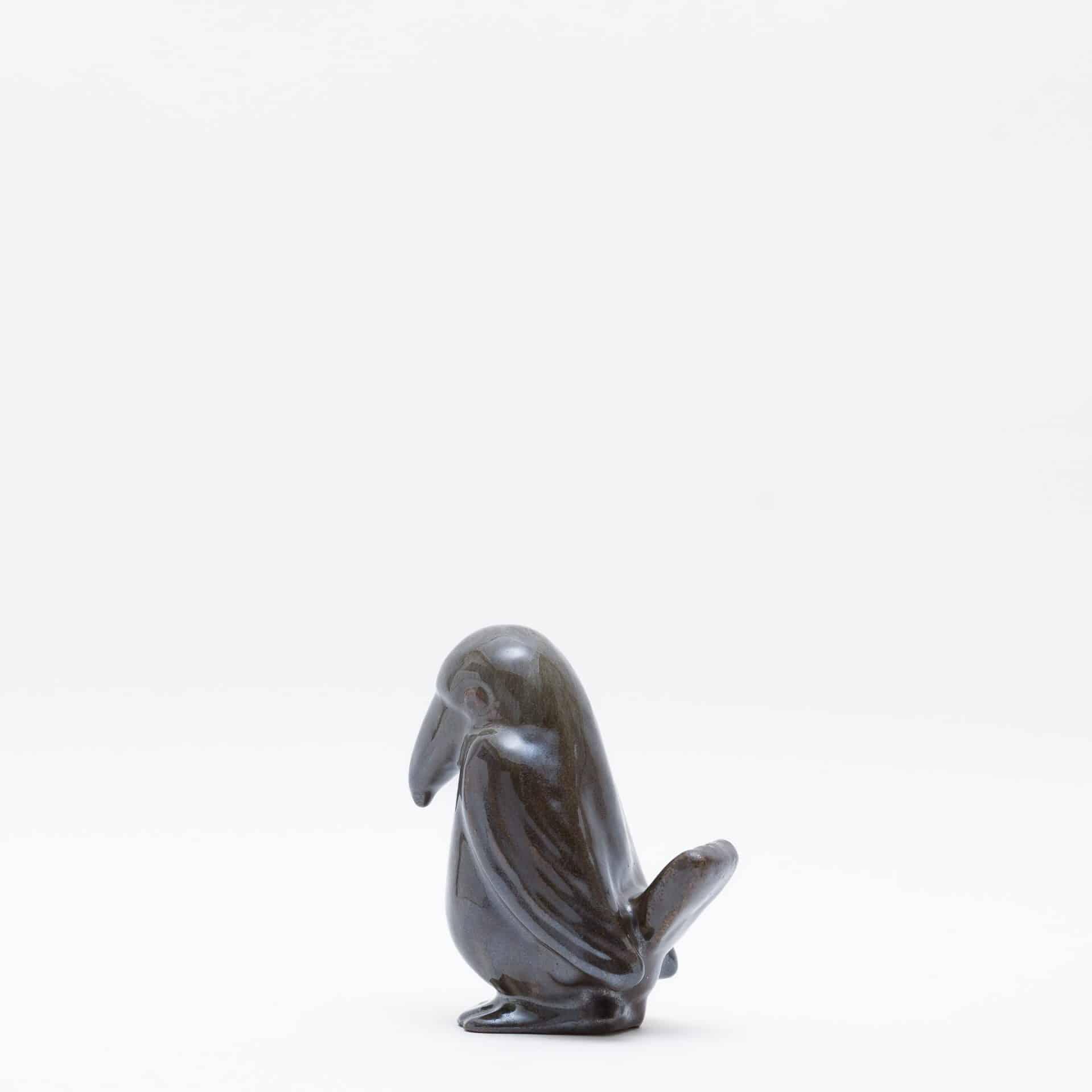- 土の寓話、動物たちの個性ホルムの動物たちは、単なる写実的な模倣ではありません。彼は「あえて自然を研究することはしない」と語り、例えば雄鶏を作る際には、その姿形よりも「雄鶏の傲慢さ」という概念そのものを捉えようとしました。そのため、彼の動物たちはそれぞれが強い個性を持ち、まるで寓話の登場人物のようです。落ち着いた炻器の色調が、それぞれの生き物に最もふさわしい肌理と生命感を与えています。