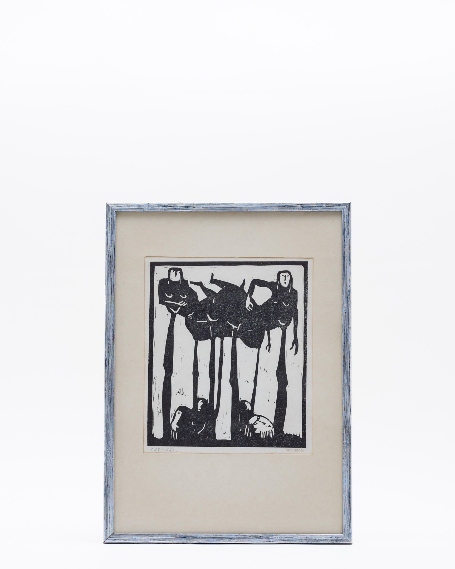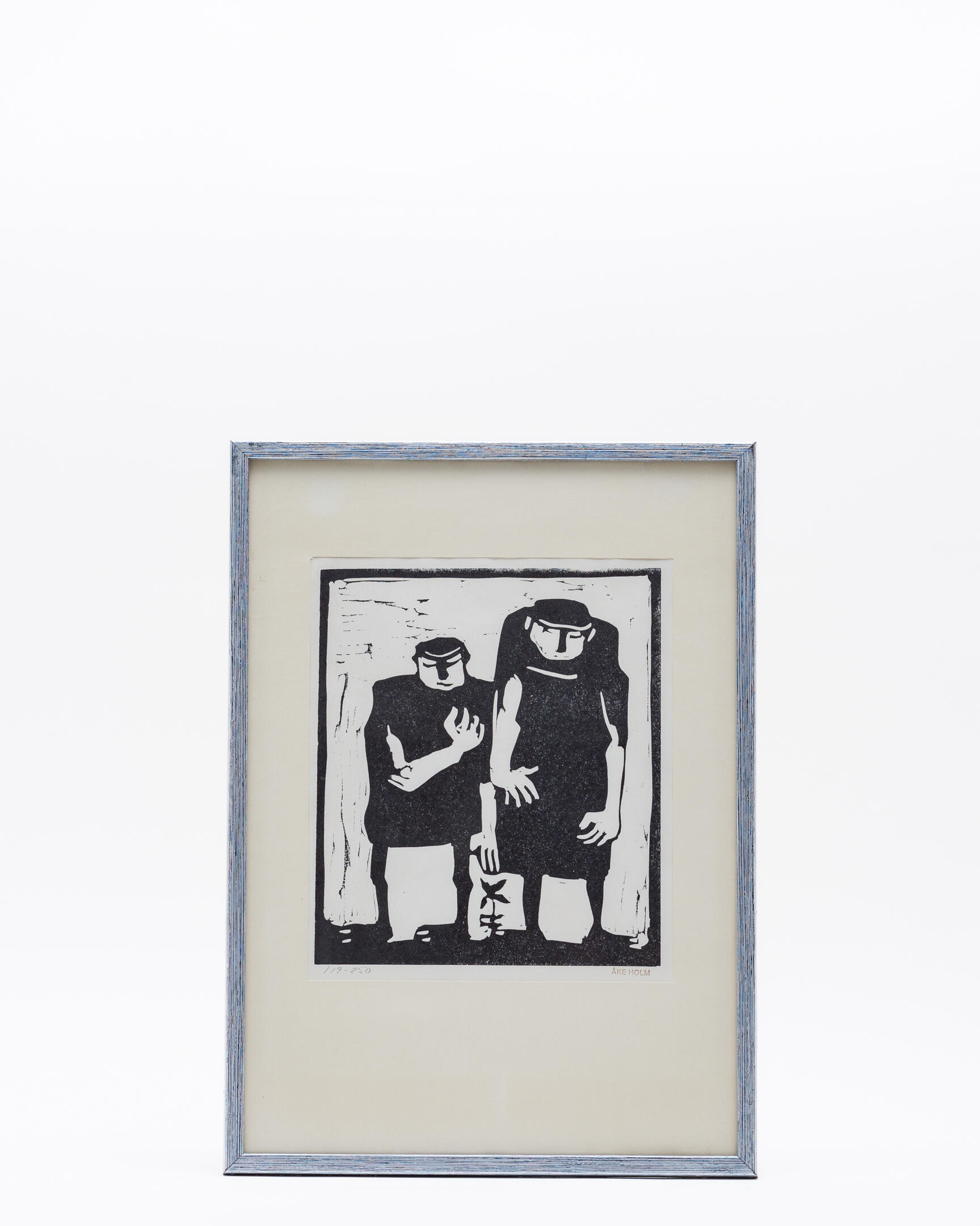 1966年、ホルムは愛するヘーガネス博物館の増築資金を集めるため、版画制作を始めます。博物館のメンバーだけが手にすることのできた限定版画で、本人にとっては「趣味」でしたが、15年間で275種ものモチーフが生まれる驚異的な仕事になりました。陶器と同じ聖書の世界が、紙の上ではより自由に、軽やかに描かれています。