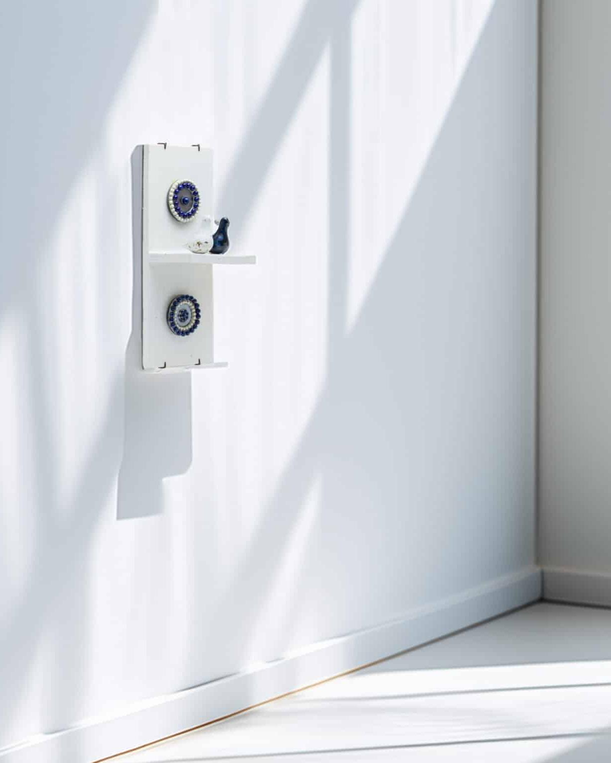 彼女の作風を特徴づけるのは、小さな粘土粒や花弁状のパーツをひとつひとつ手作業で貼り重ねる繊細なレリーフ技法。